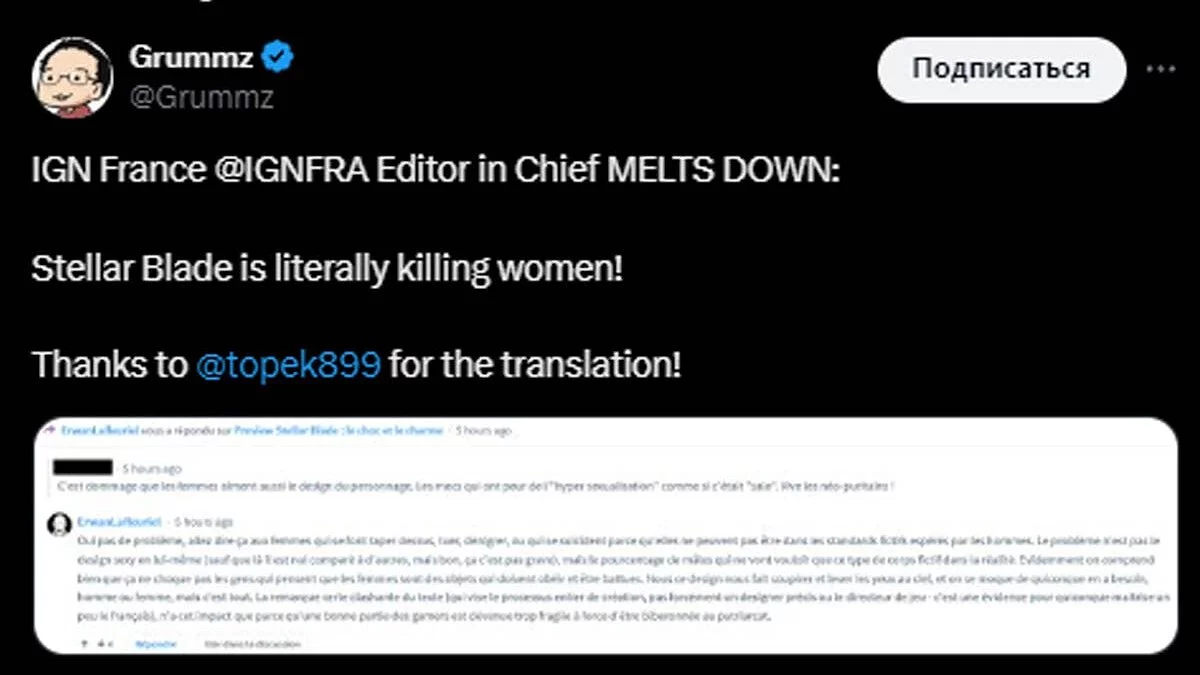 В превью Stellar Blade издание IGN France назвало женатого создателя игры «человеком, который никогда не видел женщину» -