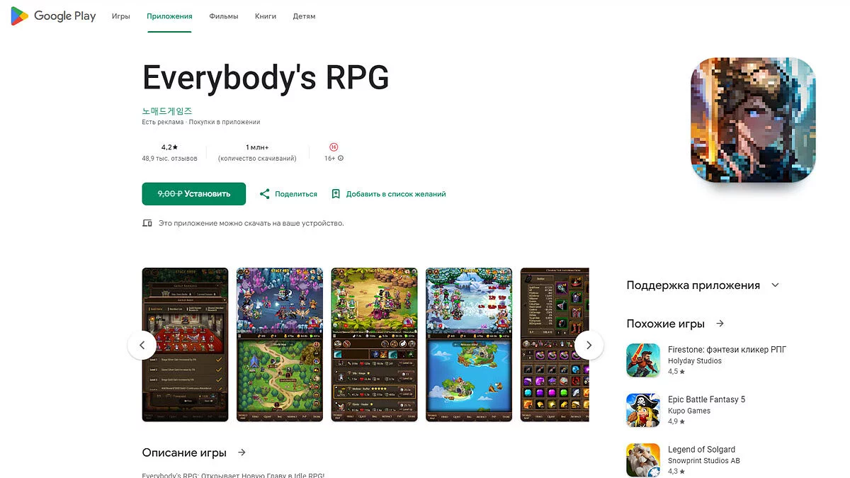 - Everybody's RPG — олдскульная ролевая аркада с видом сбоку, пиксельной графикой и бесконечными уровнями (загрузить бесплатно);