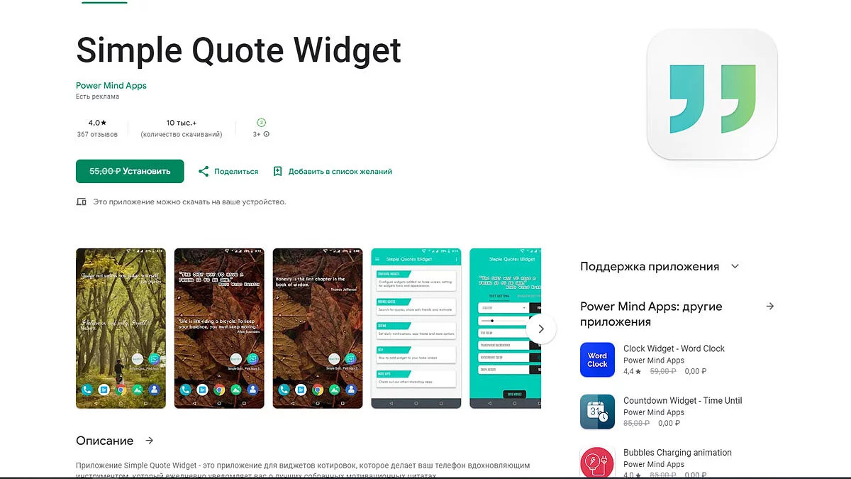 - Simple Quote Widget — виджет для смартфона, который добавит на ваш экран сменяющиеся мотивационные цитаты (загрузить бесплатно);