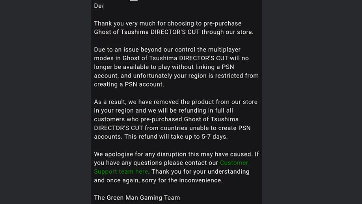 Обновление: Магазин сделал это по собственной воле, поскольку не хотел вводить покупателей в заблуждение. Ghost of Tsushima: Director's Cut продолжит продаваться в странах без PSN.