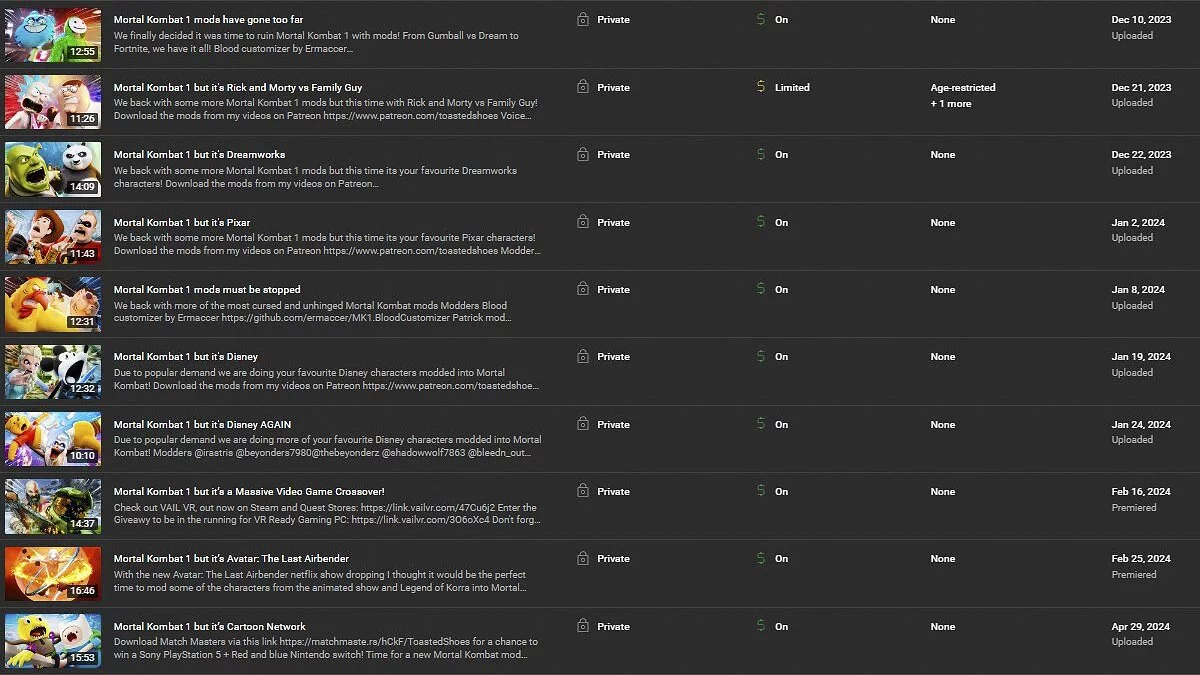 Известный моддер ToastedShoes заявил, что Warner Bros. потребовала убрать все ролики по Mortal Kombat 1 с его YouTube-канала. В противном случае под удаление попадет сам канал.