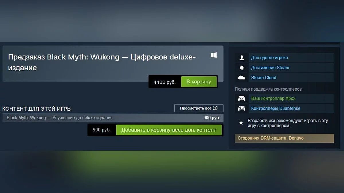 Новый трейлер Black Myth: Wukong показали во время Summer Game Fest 8 июня. Одновременно с этим стартовали предзаказы на игру. Экшен можно приобрести в российском Steam по цене 3 599 рублей для обычного издания и 4 499 рублей за Deluxe-версию. За предзаказ последней обещают бонусы в виде снаряжения, оружия и цифрового сборника саундтреков игры.