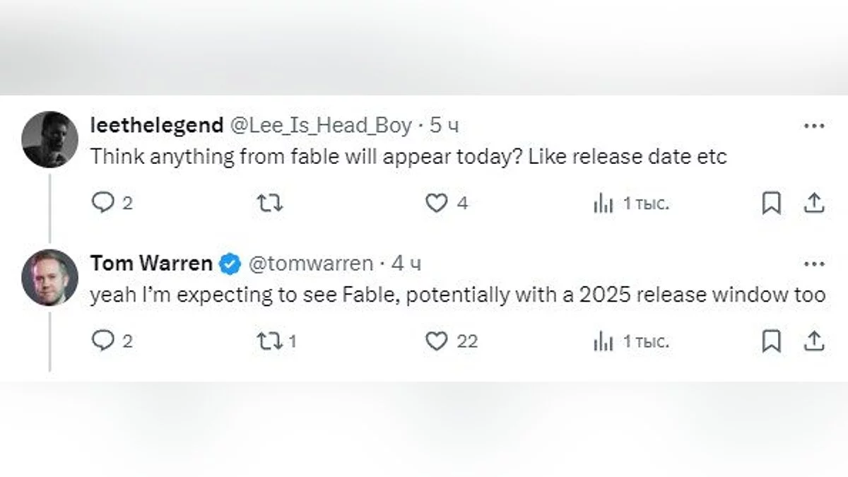 Журналист The Verge Том Уоррен (Tom Warren) заявил, что новую Fable могут показать на презентации Xbox Games Showcase. Он предположил, что игра выйдет в 2025 году.