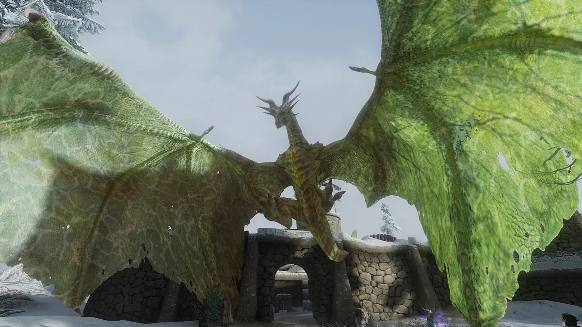 В Skyrim добавили высокополигональных драконов с текстурами 16K. Они стали выглядеть более грозно и напоминают динозавров