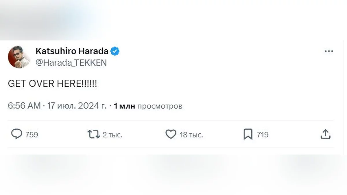 На своей страничке в X (Twitter) Кацухиро Харада опубликовал пост со следующим текстом: «Get Over Here». Эта культовая фраза принадлежит Скорпиону из Mortal Kombat, а поэтому вполне возможно, что именно он может появиться в Tekken 8.