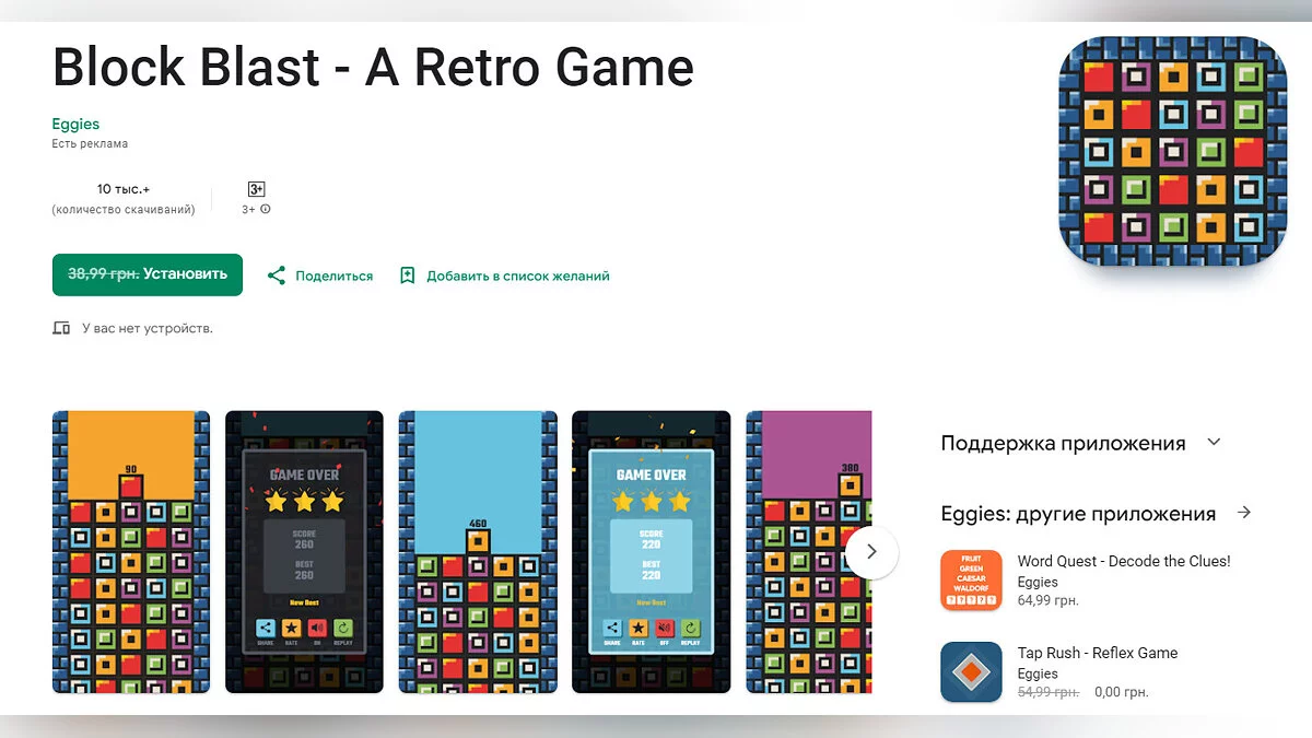 - Block Blast — A Retro Game — головоломка с блоками, выполненная в олдскульном стиле (загрузить бесплатно);
