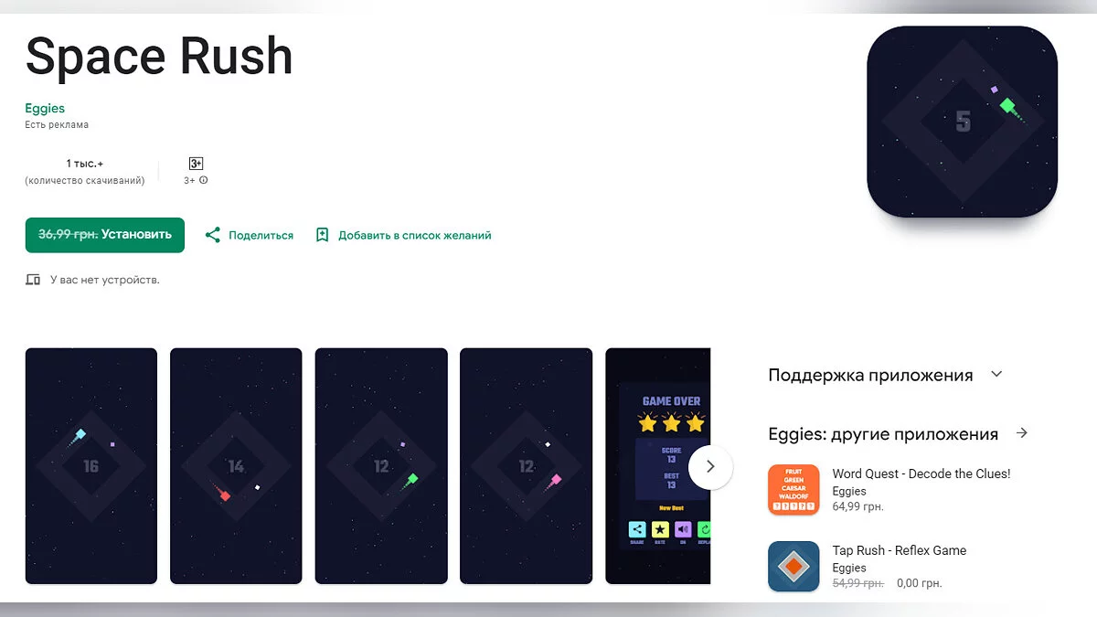 - Space Rush — игра, в которой нужно удержать звезду на квадратной орбите (загрузить бесплатно);
