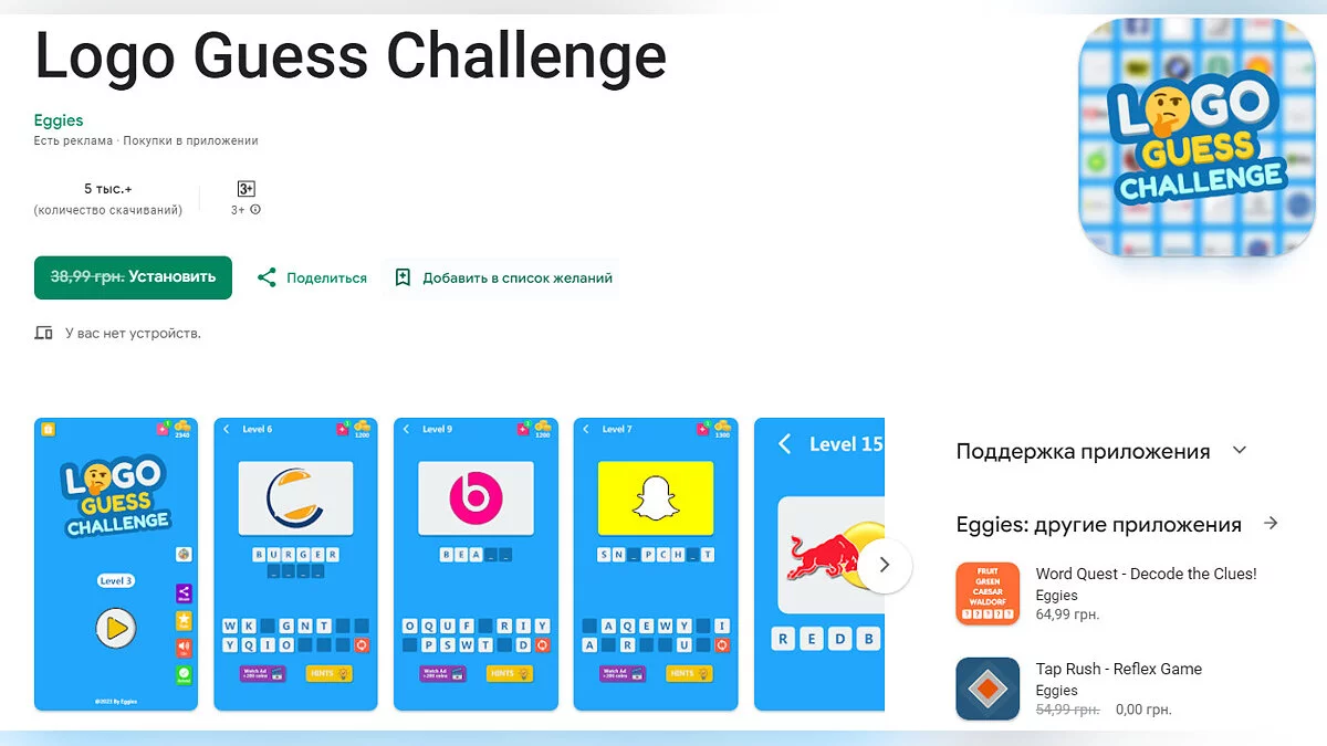 - Logo Guess Challenge — головоломка, в которой нужно отгадывать популярные логотипы (загрузить бесплатно);