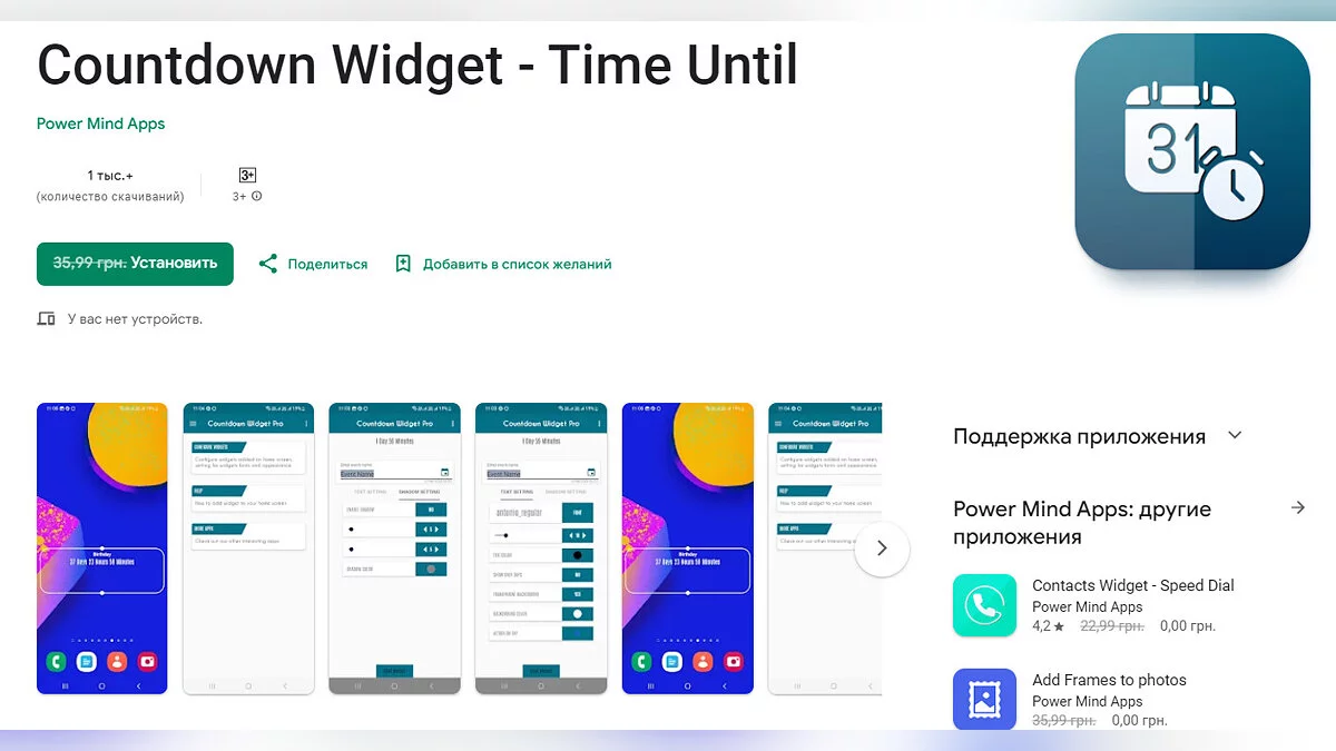 - Countdown Widget — виджет обратного отсчета до запланированных событий (загрузить бесплатно);