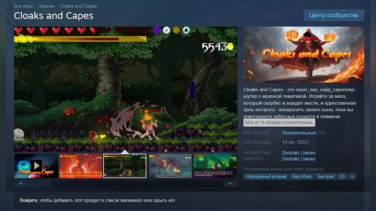 Рейтинг Cloaks and Capes составляет 94%. Раньше игра продавалась за 385 руб. Добавить ее в свою библиотеку Steam можно здесь.