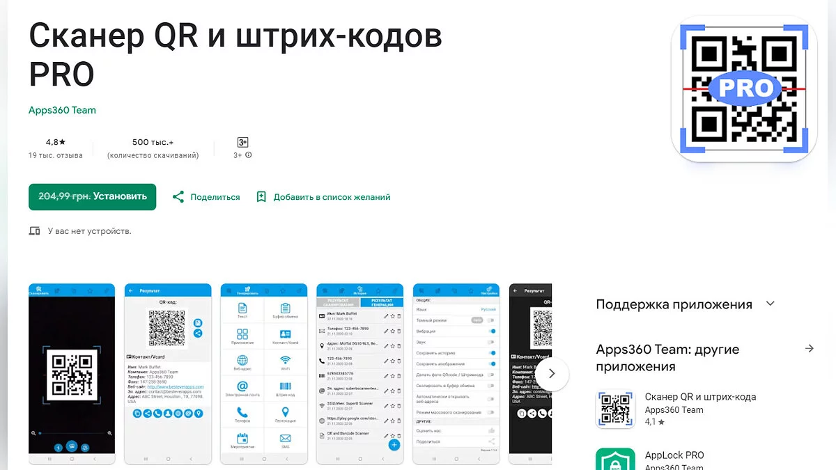 - QR and Barcode Scanner PRO — программа для сканирования штрих-кодов (загрузить бесплатно);