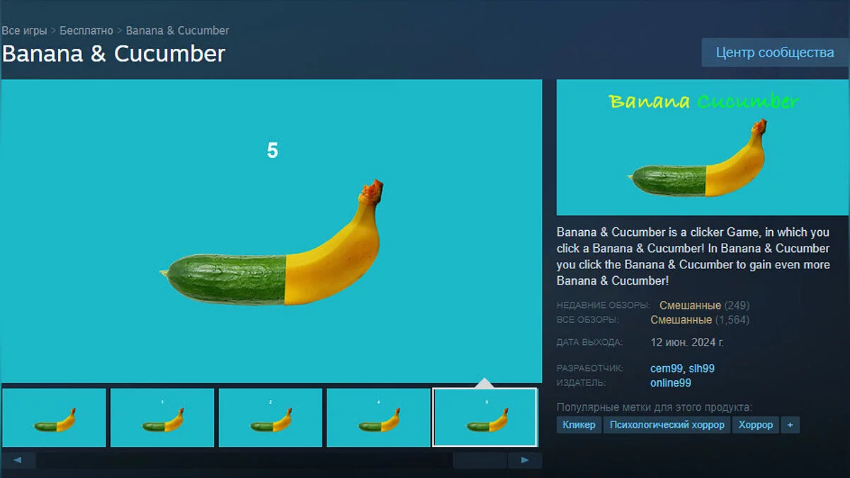 - Banana & Cucumber — простенький кликер (69% рейтинга);