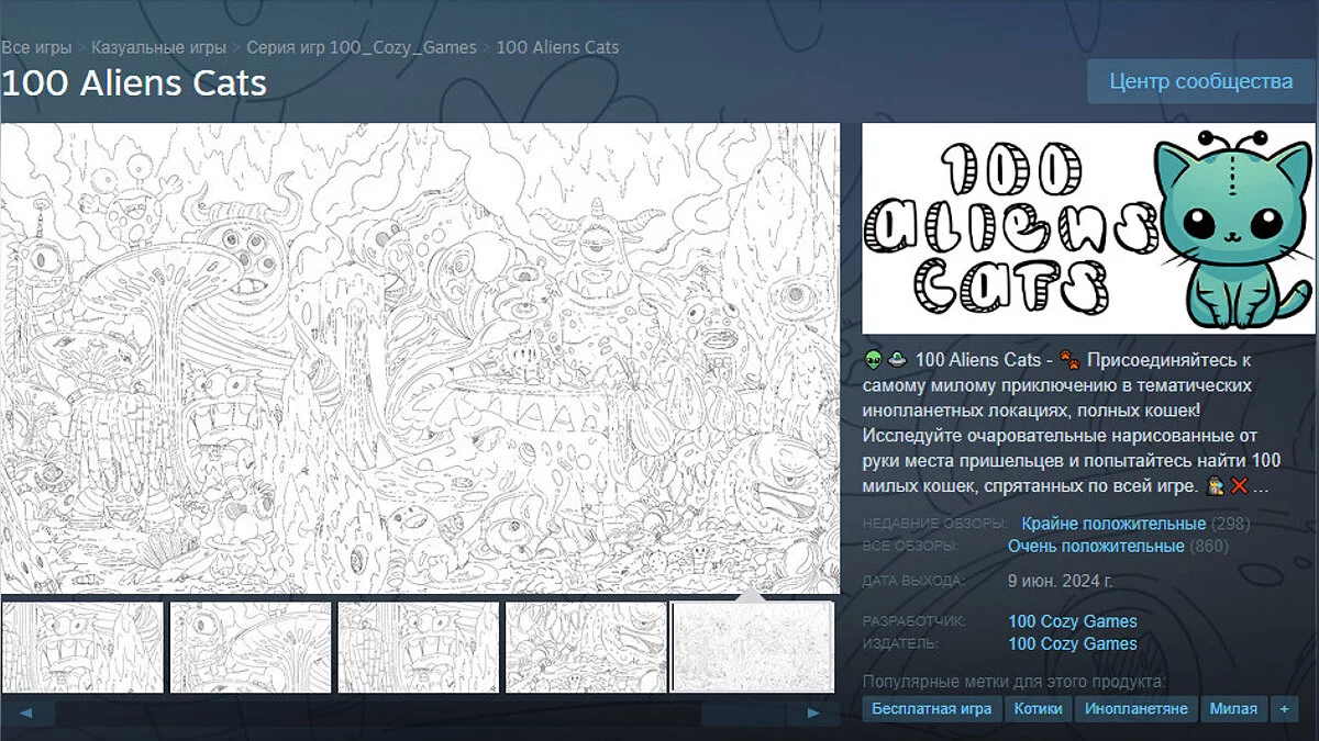 - 100 Aliens Cats — игра про поиск котов на огромном арте (94% рейтинга).