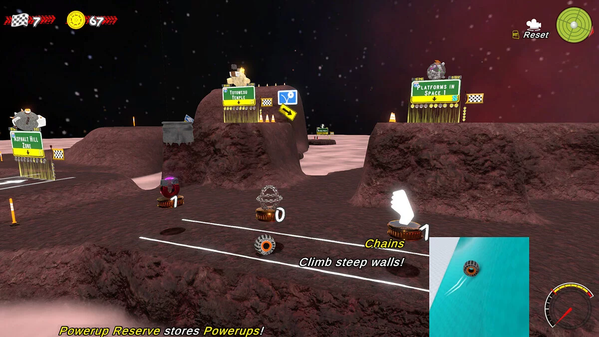Среди особенностей разработчик выделяет разнообразные локации, включая храмы в пустыне, шоссе, космические просторы, вулканы и сады.
