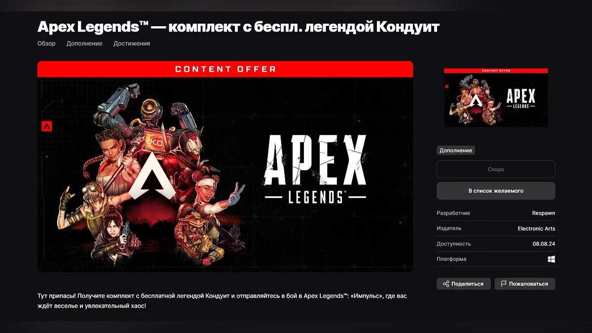 Кроме того, пользователям Epic Games Store через неделю предложат бесплатное DLC для Apex Legends в виде новой раскраски и одной легенды.