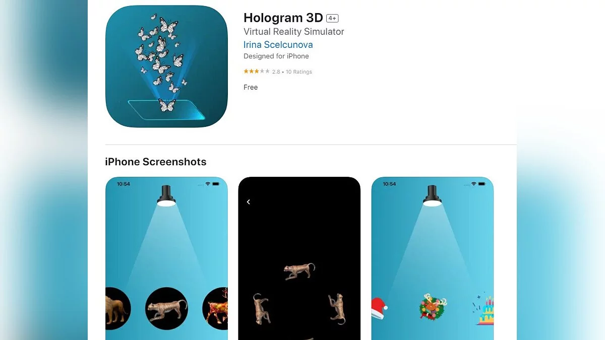 - Hologram 3D — приложение с дополненной реальностью, позволяющее имитировать создание голограмм (загрузить бесплатно).