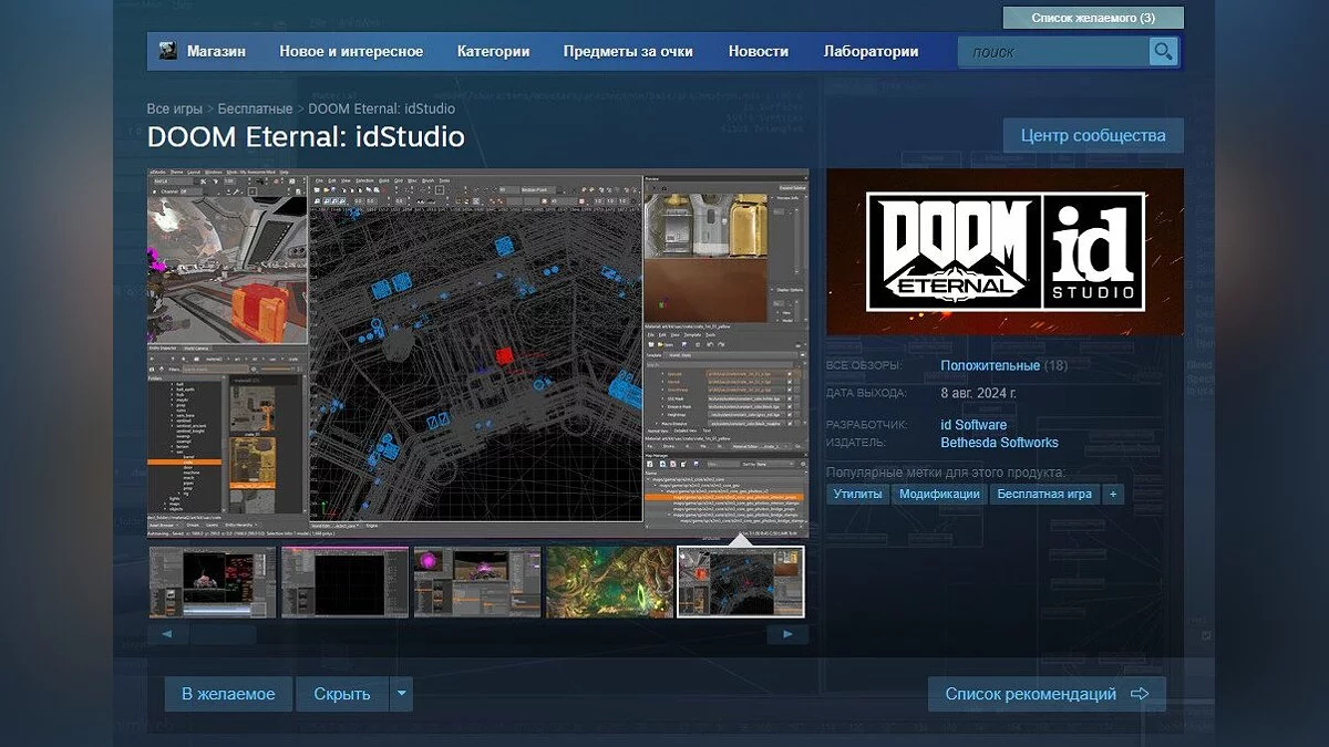 Пока что готова только бета-версия инструментария Doom Eternal: idStudio, однако загрузить его и использовать может любой пользователь ПК. Скачать его можно по этой ссылке. Чтобы устанавливать пользовательские моды, созданные с помощью этой программы, необходимо в свойствах игры в Steam выбрать вкладку «Бета-версии» и «pc-mod-preview». После этого появится возможность загружать модификации. Более полную инструкцию можно найти на сайте id Software.