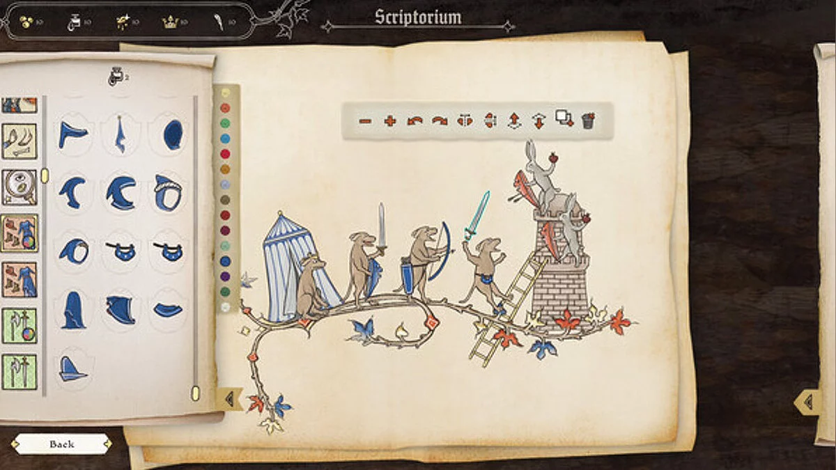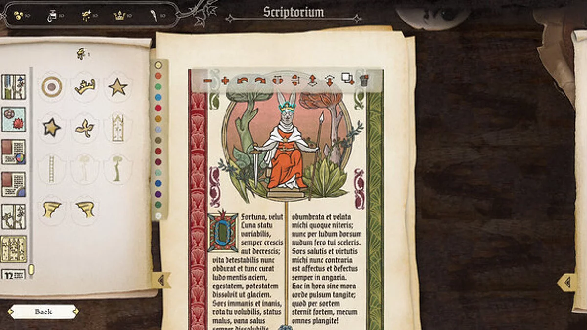 Добро пожаловать! Пришло время открыть свою собственную средневековую рукописную мастерскую — Скрипторий. Создавайте потрясающие средневековые иллюстрации! Выполняйте заказы престижных заказчиков, создавая собственные рисунки на страницах средневековых книг. Создавайте, получайте деньги, открывайте новые заказы, создавайте элементы дизайна и развивайте свою мастерскую. А со временем и практикой ваши работы и слава могут дойти до самой королевы!