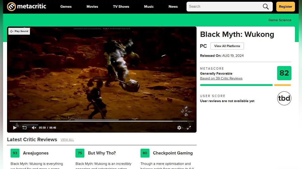 На момент написания новости рейтинг Black Myth: Wukong на Metacritic составил 82 балла из 100.