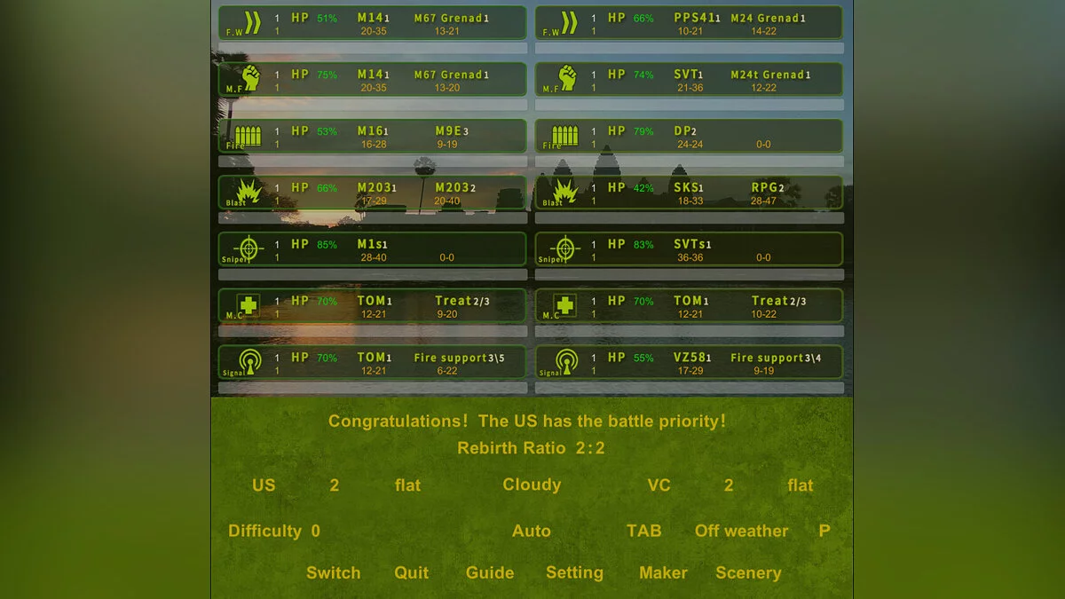 BATTLE THUNDER FRONT — пошаговая стратегия, основанная на теме войны во Вьетнаме. Есть 224 карты, 250 фоновых пейзажей и около 78 видов оружия. Раньше проект стоил 42 руб.