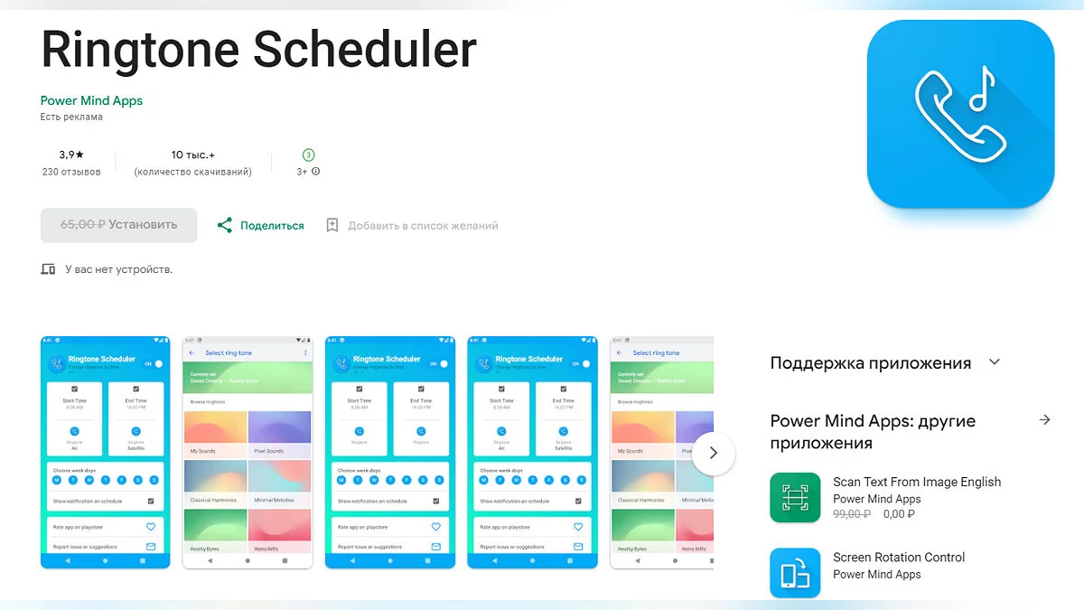 - Ringtone Scheduler — программа, позволяющая планировать рингтон звонка в зависимости от времени суток (загрузить бесплатно);