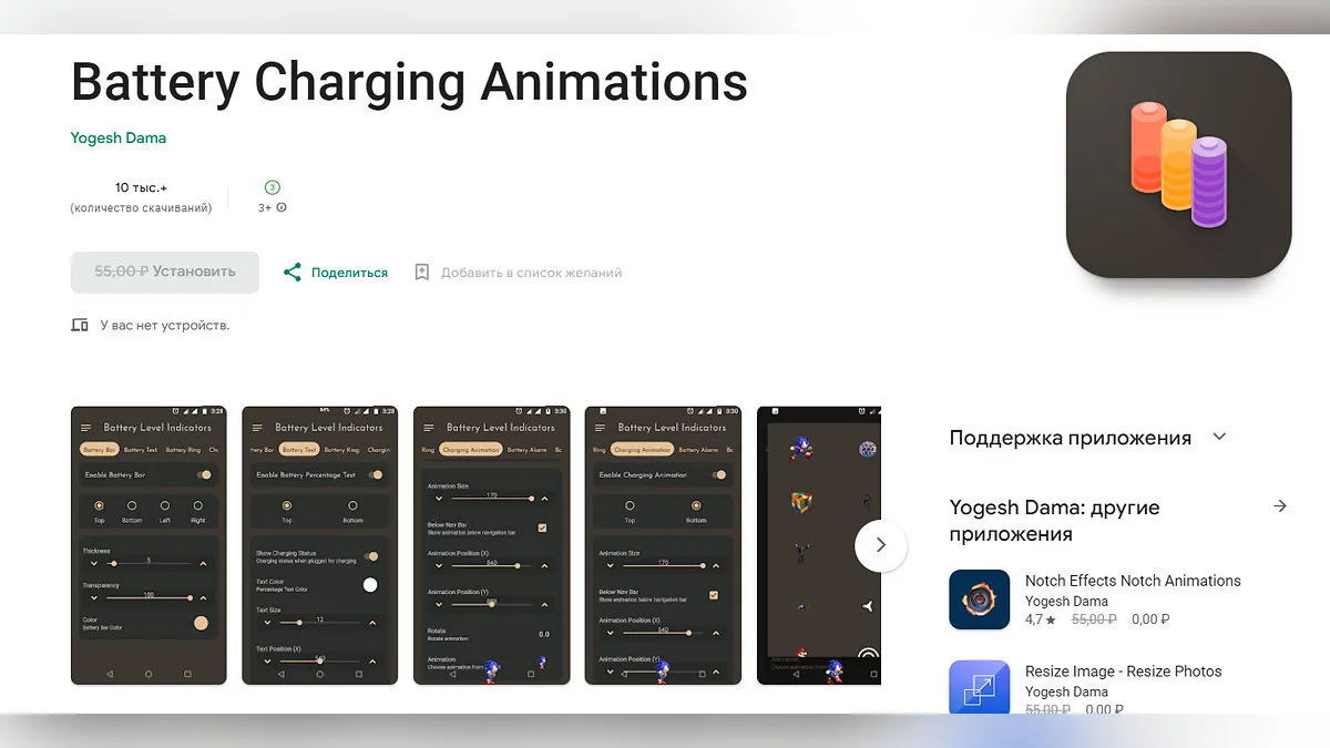 - Battery Charging Animations — приложение, позволяющее кастомизировать процесс зарядки аккумулятора (загрузить бесплатно);