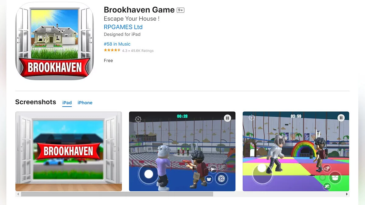 - Brookhaven Game — трехмерная игра, в которой игрок может посещать разные комнаты в доме с испытаниями (загрузить бесплатно);