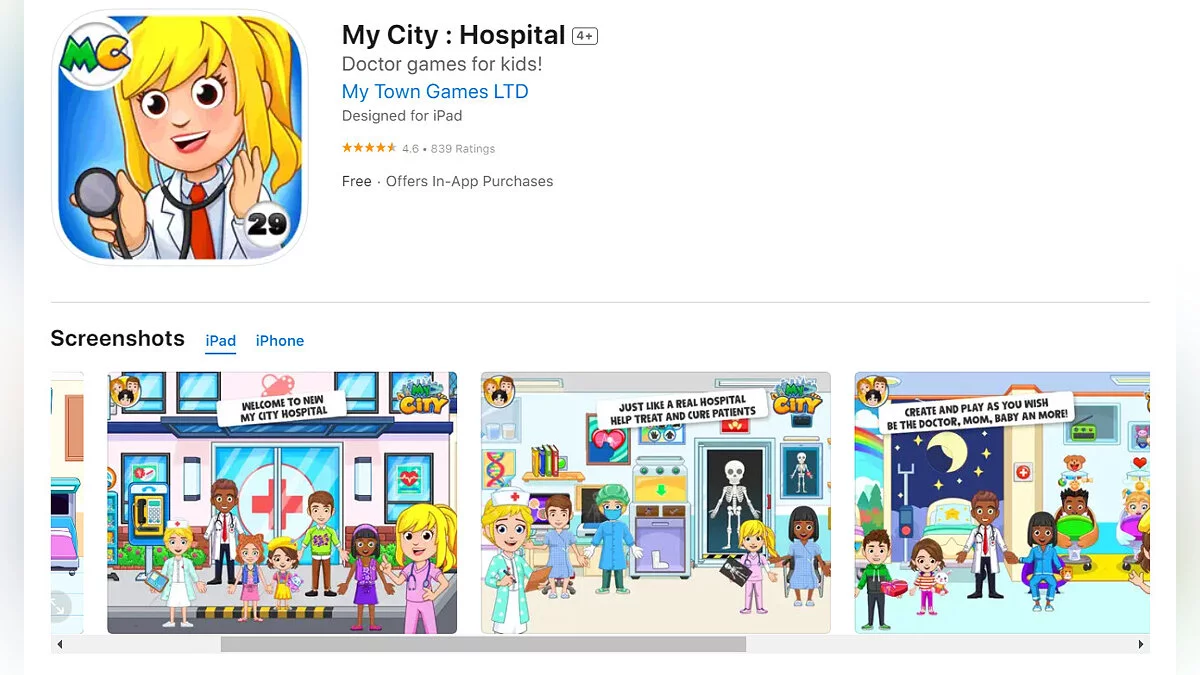 - My City: Hospital — мультяшная игра, в которой игроку предстоит управлять больницей (загрузить бесплатно);