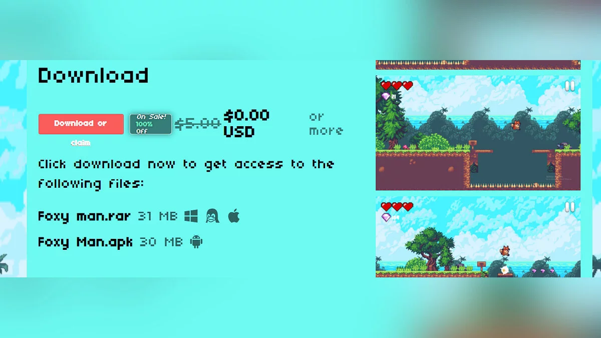 Foxy Man — пиксельный платформер в духе 80-х и 90-х, в котором главным героем выступает отважный лисенок, путешествующий по миру в поисках бриллиантов. На пути ему будут встречаться разные враги и ловушки.