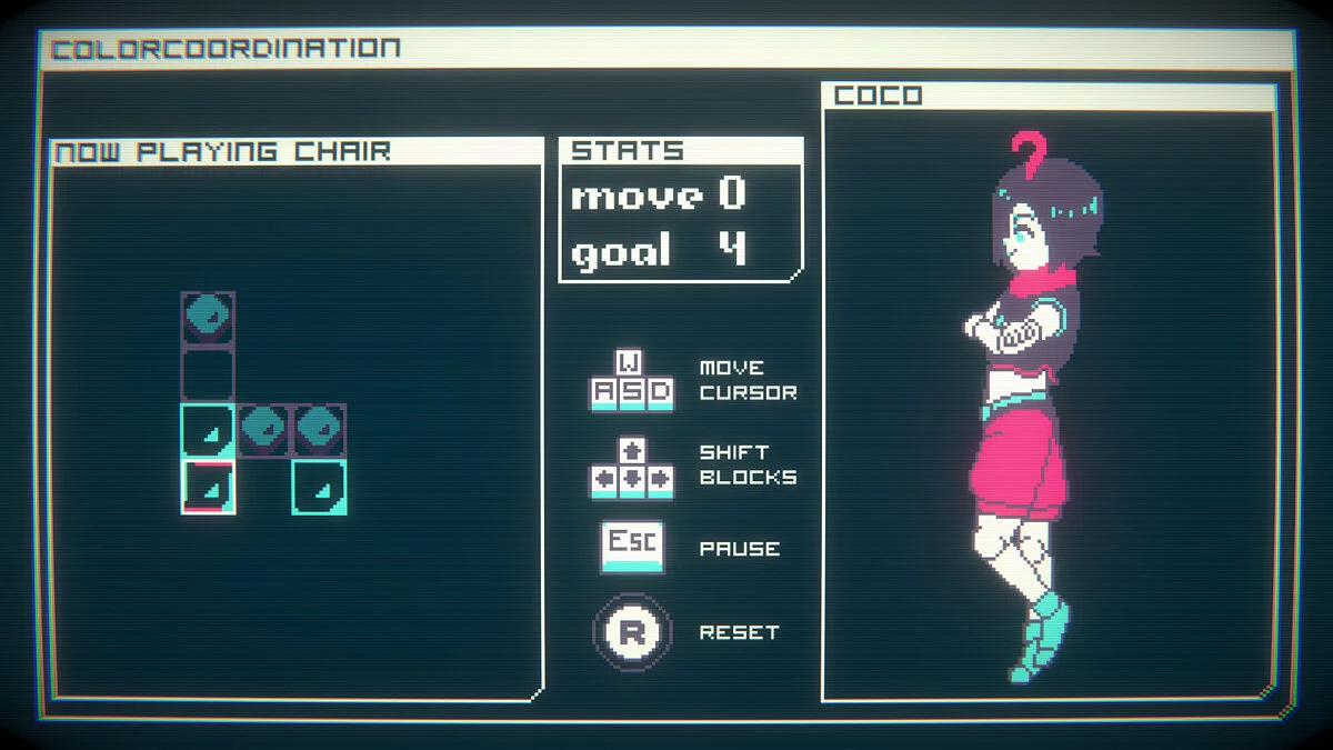ColorCoordination — головоломка в ретро-стилистике, где нужно сопоставлять блоки одного цвета. Параллельно с игроком будет общаться ИИ-помощница Коко, поднимающая важные темы. Страница в Steam.