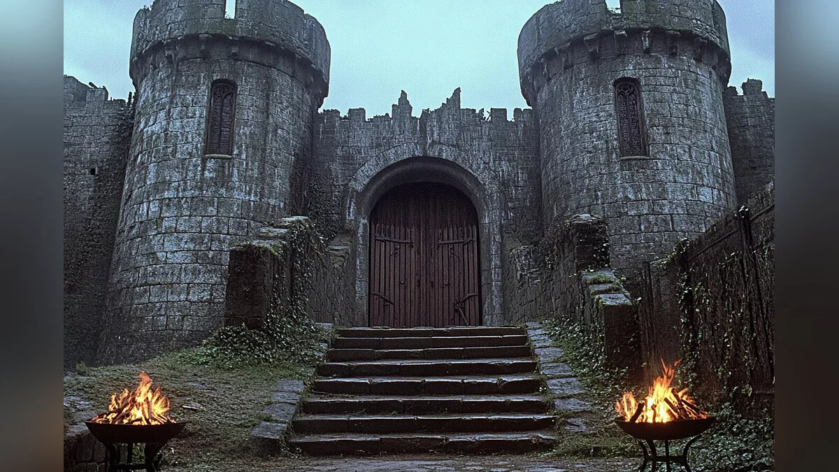 В третьей подборке показаны три локации: церковь, ворота замка и деревня.