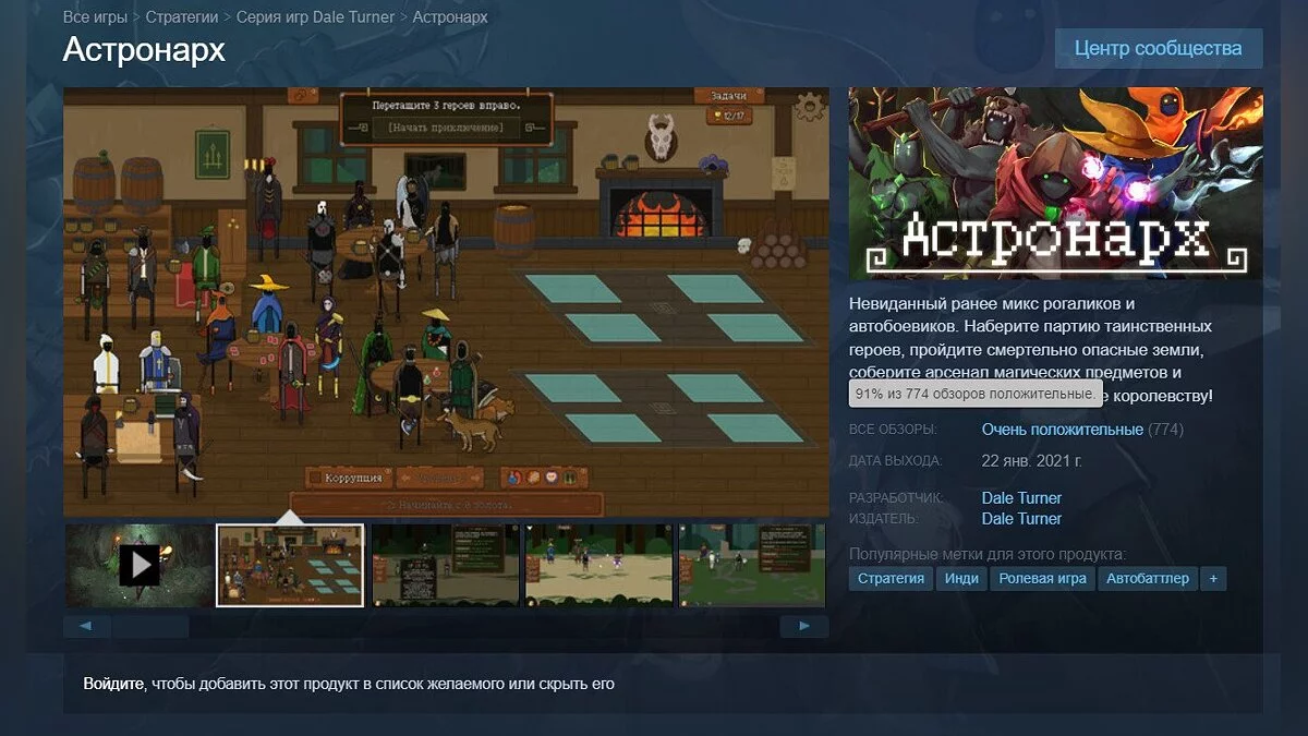 Для Steam стартовала новая бесплатная раздача игры. Речь идет о рогалике с элементами RPG, стратегии и автобаттлера под названием Astronarch, который вышел в 2021 году и получил 91% положительных отзывов.
