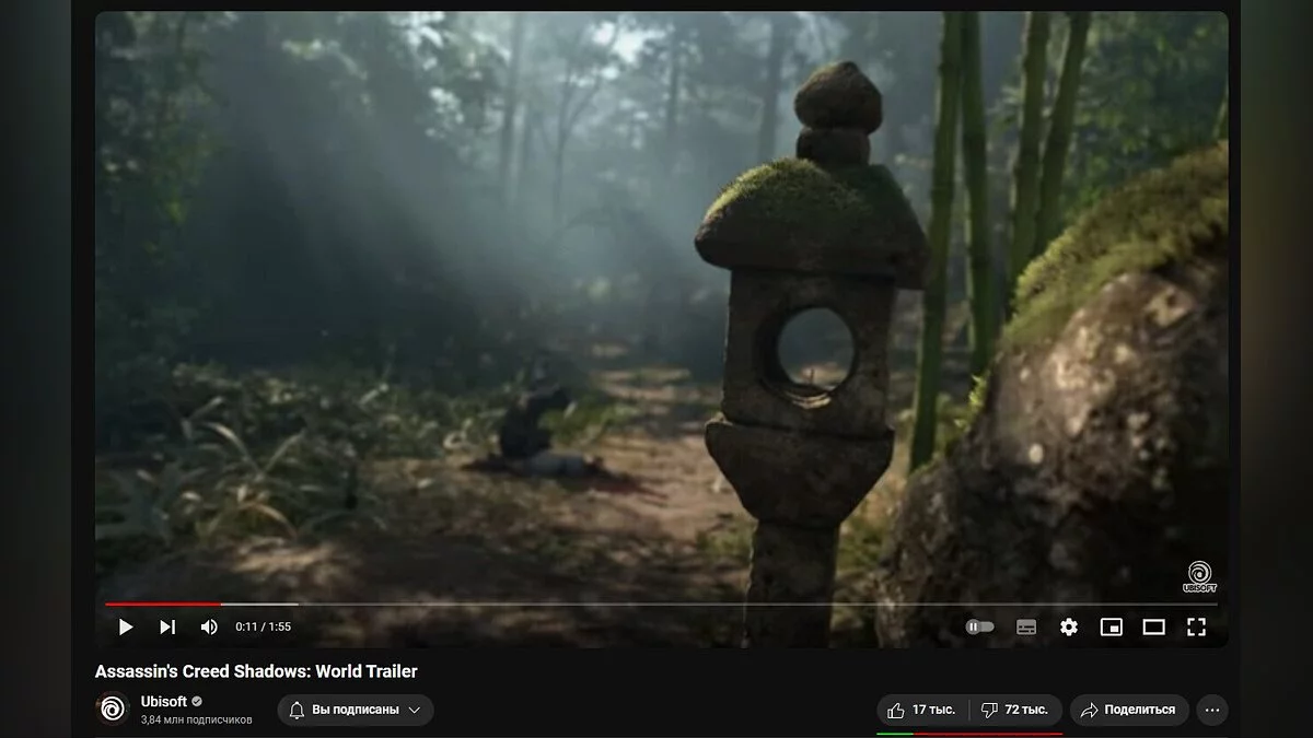 Японцы не оценили: новый трейлер Assassin's Creed Shadows утонул в дизлайках