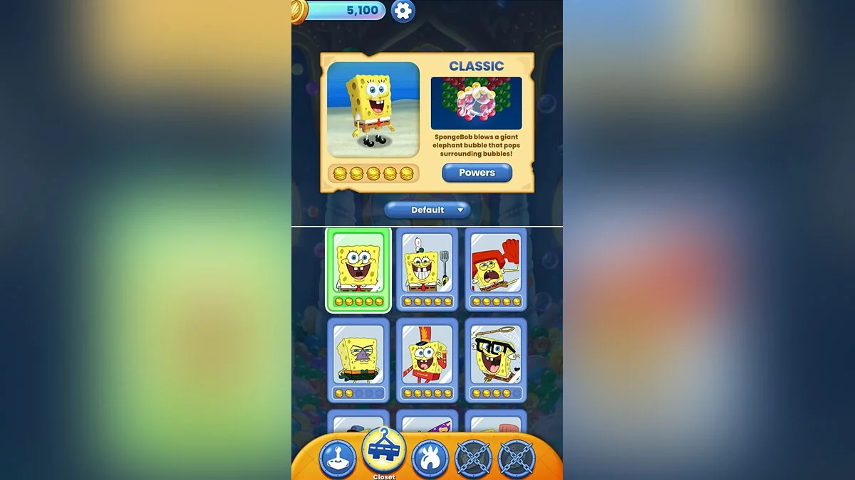 SpongeBob: Bubble Pop — головоломка с десятками уровней, где нужно стрелять по разноцветными пузырям. Игрокам доступны различные усилители, которые облегчают прохождение. Ещё есть «ловкий кран» — мини-игра, где можно получить новые костюмы или усилить старые. Игра не требует постоянного подключения к интернету. Проект вышел почти во всех странах, но не в России.