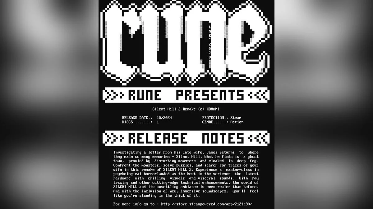 Об этом сообщила хакерская группа RUNE, которая ранее успешно справилась с Denuvo в Burnout Paradise Remastered. Вес дистрибутива составляет около 24 Гб. Напомним, что в Silent Hill 2 также будут русские субтитры и интерфейс.