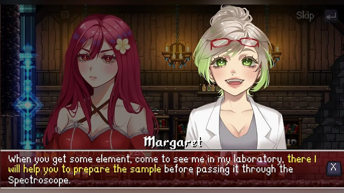 В бою она может использовать железный кнут и различные заклинания. В игре есть боссы, прокачка умений и поддержка пользовательских модификаций. Визуальный стиль вдохновлен аниме, готикой и старыми пиксельными проектами.