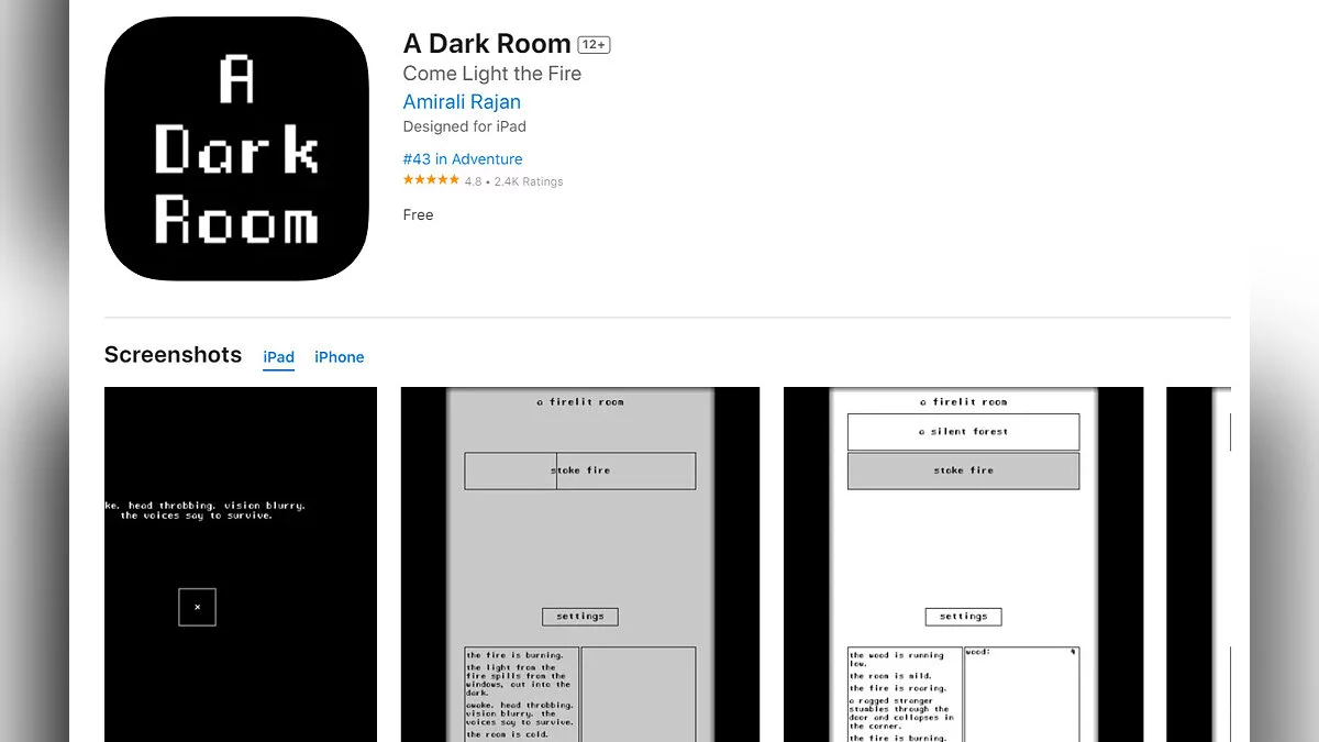 - A Dark Room — олдскульная текстовая RPG (загрузить бесплатно).