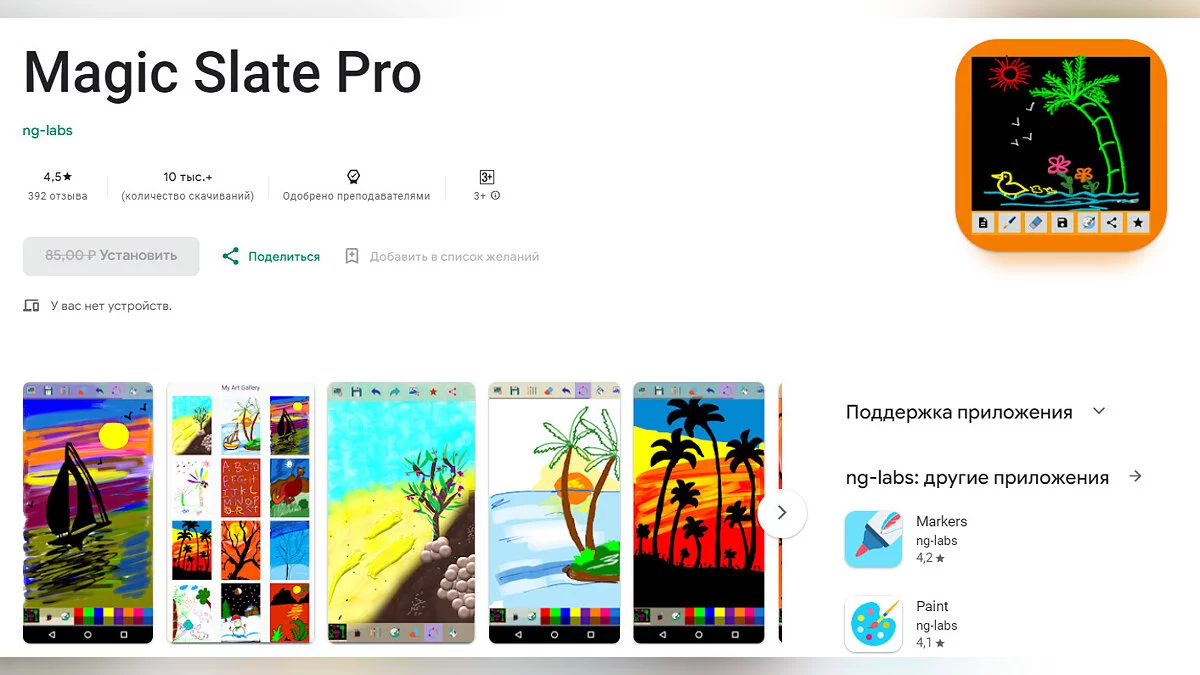 • Magic Slate Pro — детская рисовалка, которая, по словам авторов, помогает тренировать интерес ребенка к живописи и творческому мышлению (загрузить бесплатно);