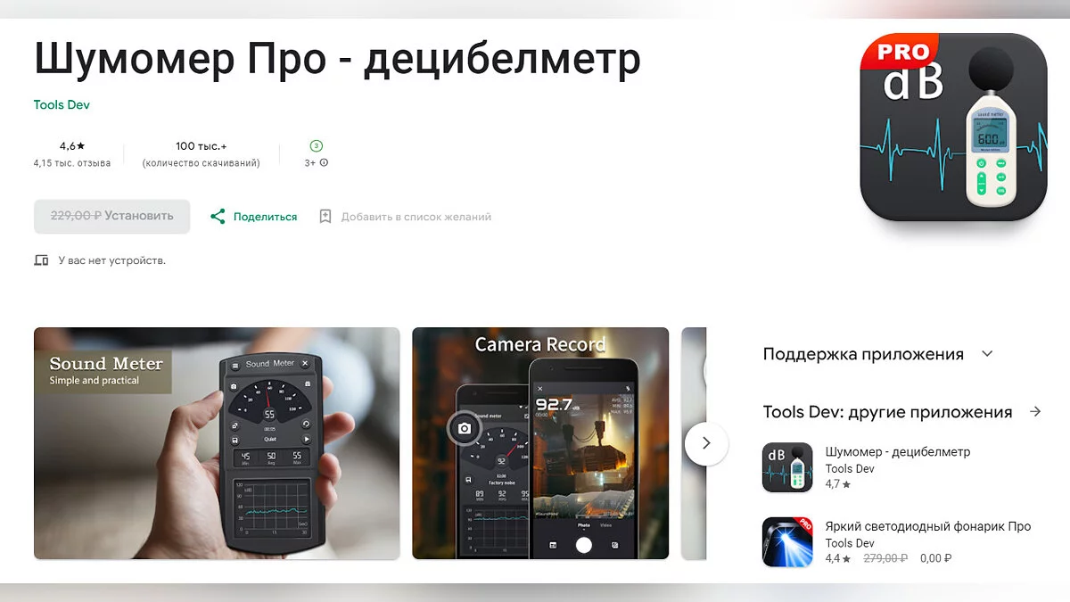 • Sound Meter — Decibel Meter — шумомер, позволяющий быстро измерить уровень шума окружающей среды (загрузить бесплатно);