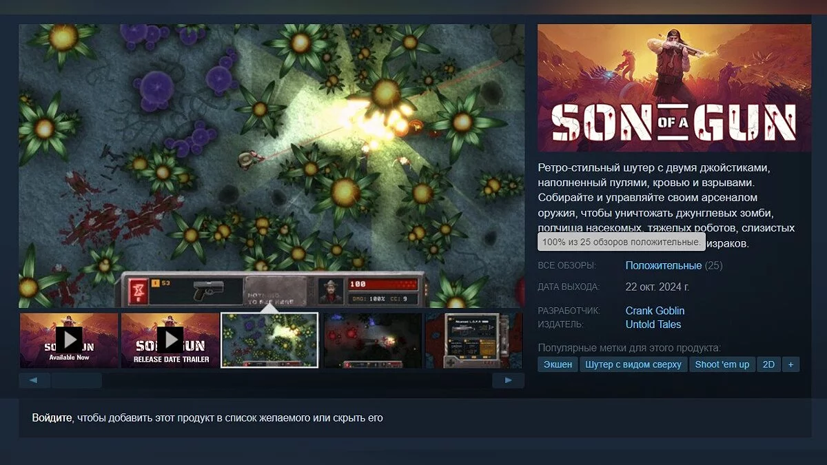 В Steam Son of a Gun продается за 719 руб с учетом скидки 20% (действует до 5 ноября). Игра также есть в GOG и Nintendo eShop.