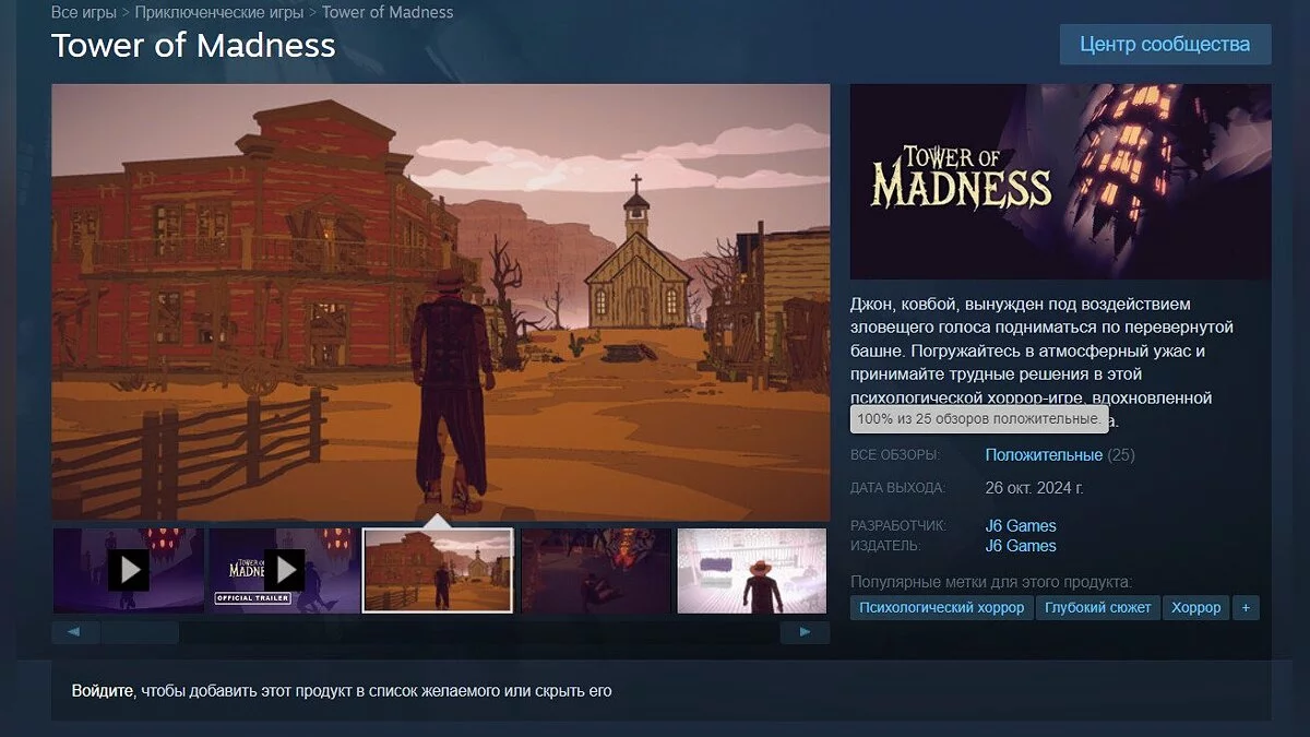 Студия J6 Games выпустила в Steam атмосферный хоррор Tower of Madness, вдохновленный культовым циклом романов Стивена Кинга (Stephen King) «Тёмная Башня» и произведениями Говарда Филлипса Лавкрафта (Howard Phillips Lovecraft). На момент написания новости у проекта 100% положительных отзывов от геймеров.
