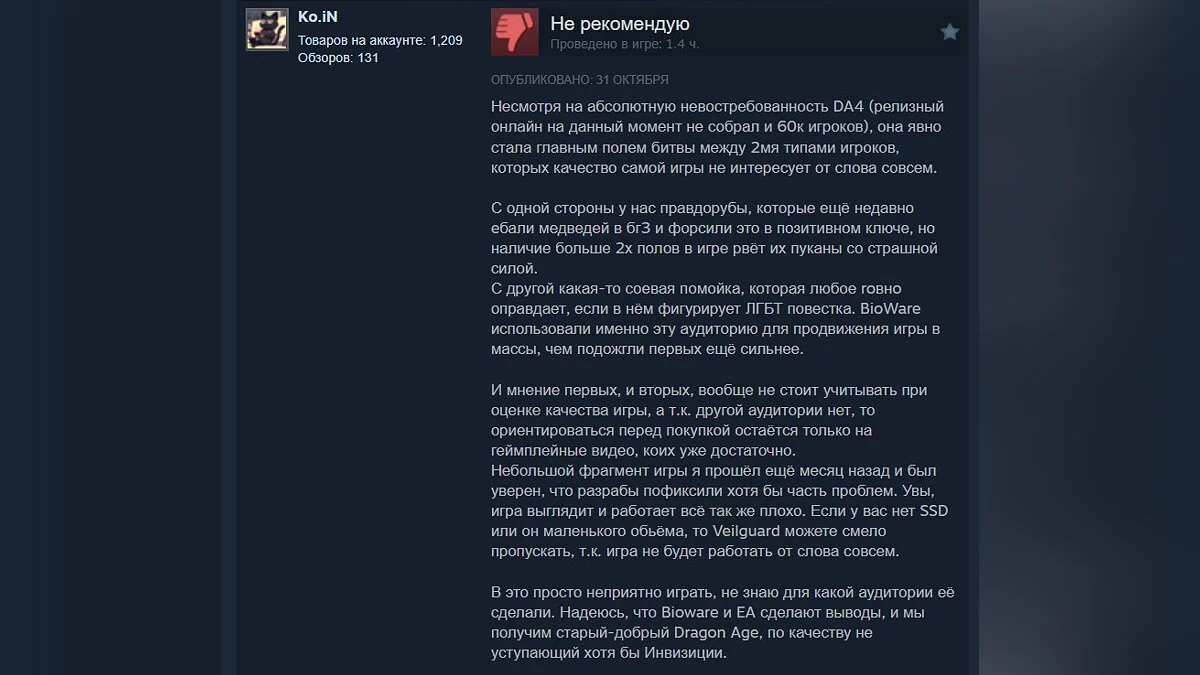 «Думал, буду бомбить от повесточки» и «Доведенная до ума Инквизиция» — как геймеры оценили Dragon Age: The Veilguard в Steam