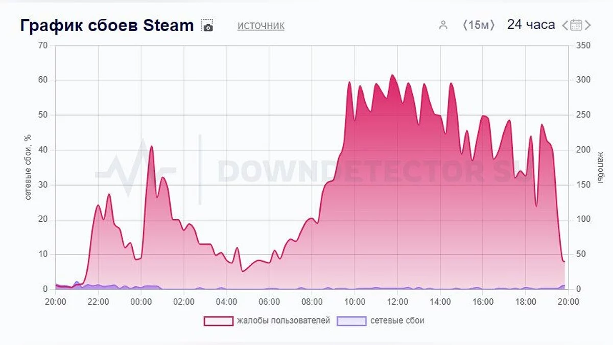 Судя по сервисам вроде Downdetector.su, количество жалоб постепенно уменьшается. Тем временем в Steam сбой никак не прокомментировали.