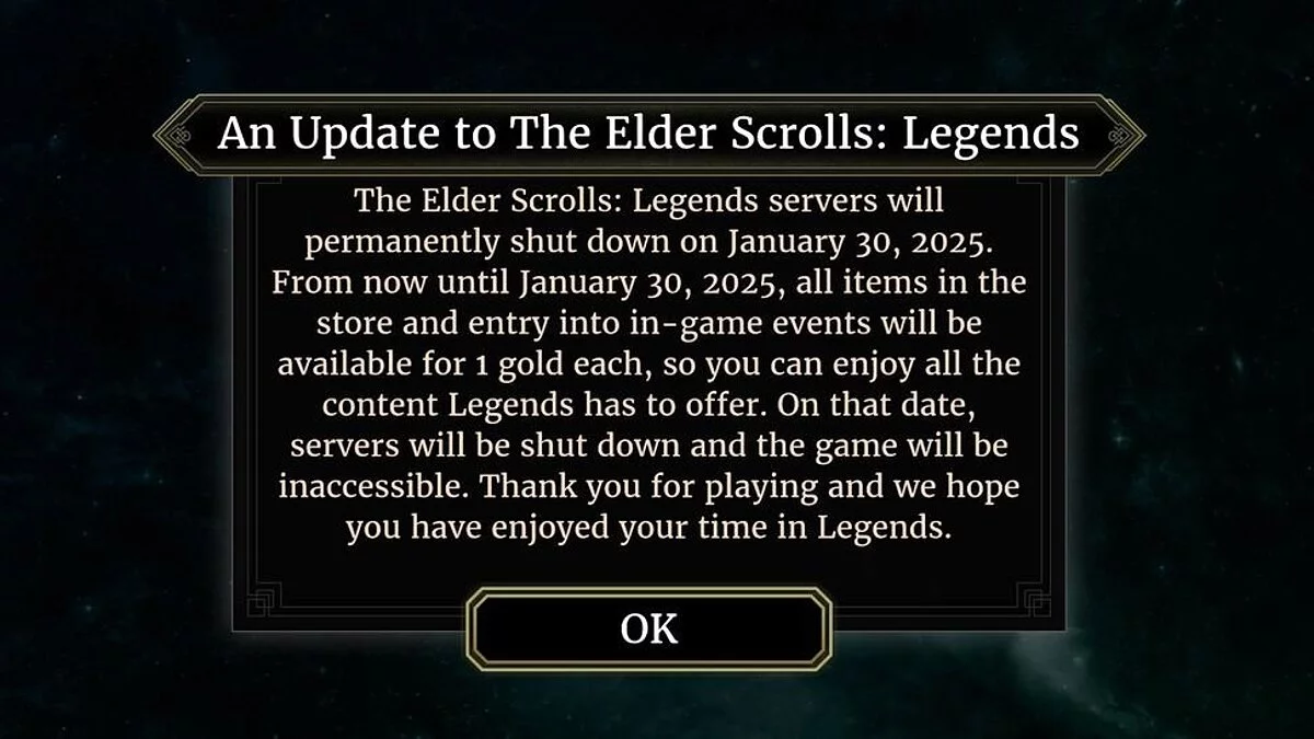 Бесплатная карточная игра The Elder Scrolls: Legends вышла в 2017 году и получила неплохие отзывы игроков, однако так и не сумела набрать достаточную аудиторию. В 2019 году Bethesda поставила ее развитие на паузу, прекратив выпускать дополнения. Тем не менее, в Legends все еще проводились внутриигровые события и были доступны одиночный и мультиплеерный режимы для игроков.