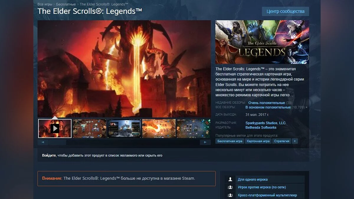Однако вчера игра была снята с продаж в Steam, о чем свидетельствует сообщение на странице. В самой The Elder Scrolls: Legends появилось уведомление, что серверы будут закрыты 30 января 2025 года. Глава студии-разработчика Sparkypants Джейсон Коулман (Jason Coleman) заявил изданию PC Gamer, что не очень понимает причину такого решения: