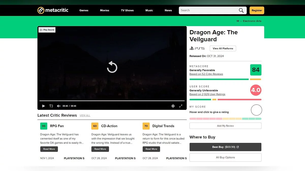 Тем временем еще один камень в огород Dragon Age: The Veilguard прилетел уже со стороны игроков. Геймеры разгромили рейтинг игры на Metacritic – средний балл на данный момент составляет 4/10 на основе почти трех тысяч отзывов. В основном фанаты раскритиковали уход от темного фэнтези и наличие «повестки». Тем временем в Steam у игры все отлично — доля положительных отзывов составила 79%.