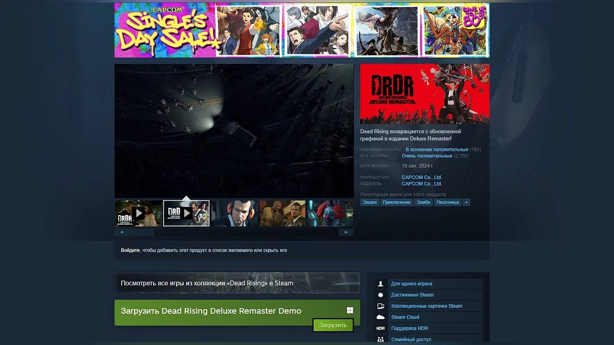 Напомним, что ремастер стал улучшенной версией Dead Rising с продвинутой графикой и анимациями, а также другими нововведениями. Игроки оценили переосмысление положительно — в Steam проект получил рейтинг 82%. Ремастер также обзавелся русской озвучкой и субтитрами, однако в России официально не продается.