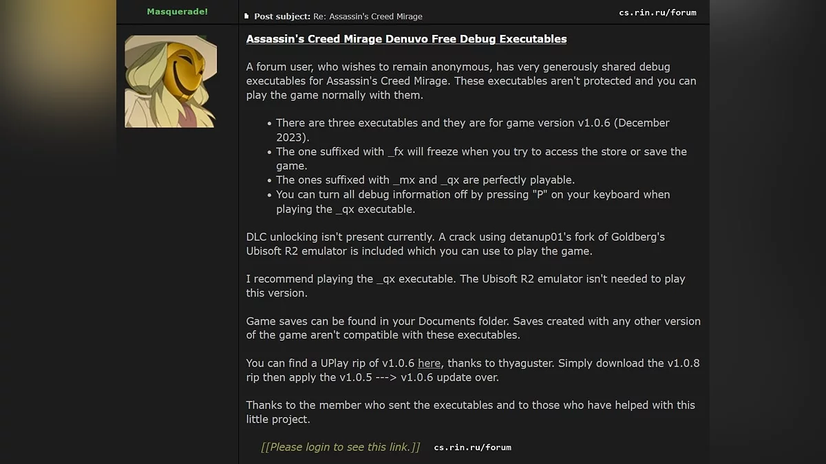 Неожиданно, но на торрент-сайтах появилась Assassin's Creed Mirage, которая до сих пор находится под защитой Denuvo. В сеть попала полностью готовая сборка игры, которую тестировали уже после релиза.
