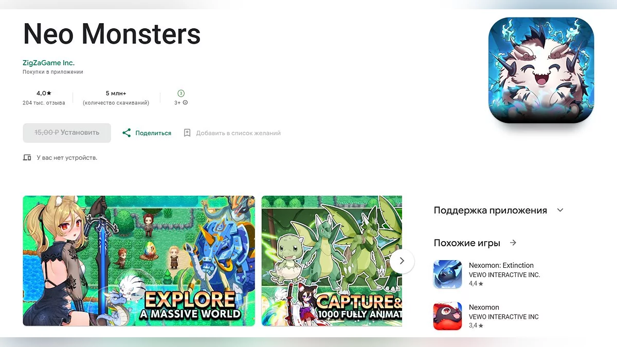 - Neo Monsters — RPG в стиле «Покеменов», в которой игрокам предстоит ловить монстров и обучать их (загрузить бесплатно).