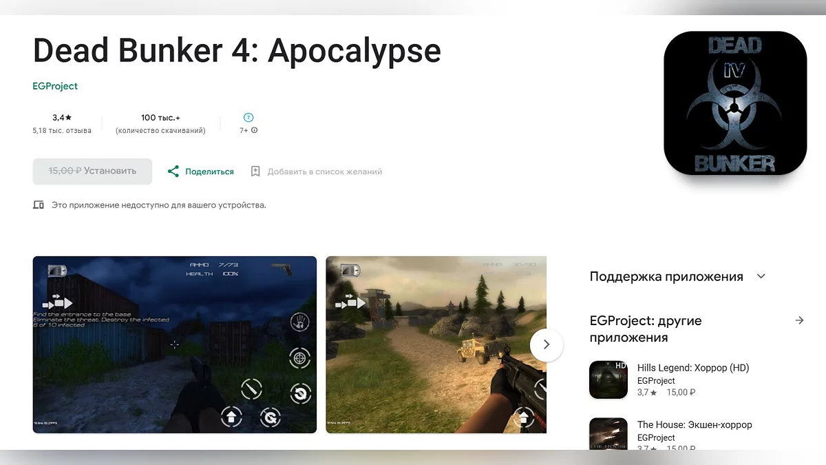 - Dead Bunker 4: Apocalypse — постапокалиптический шутер от первого лица, в котором нужно выживать в мире, где произошла зомби-эпидемия (загрузить бесплатно).